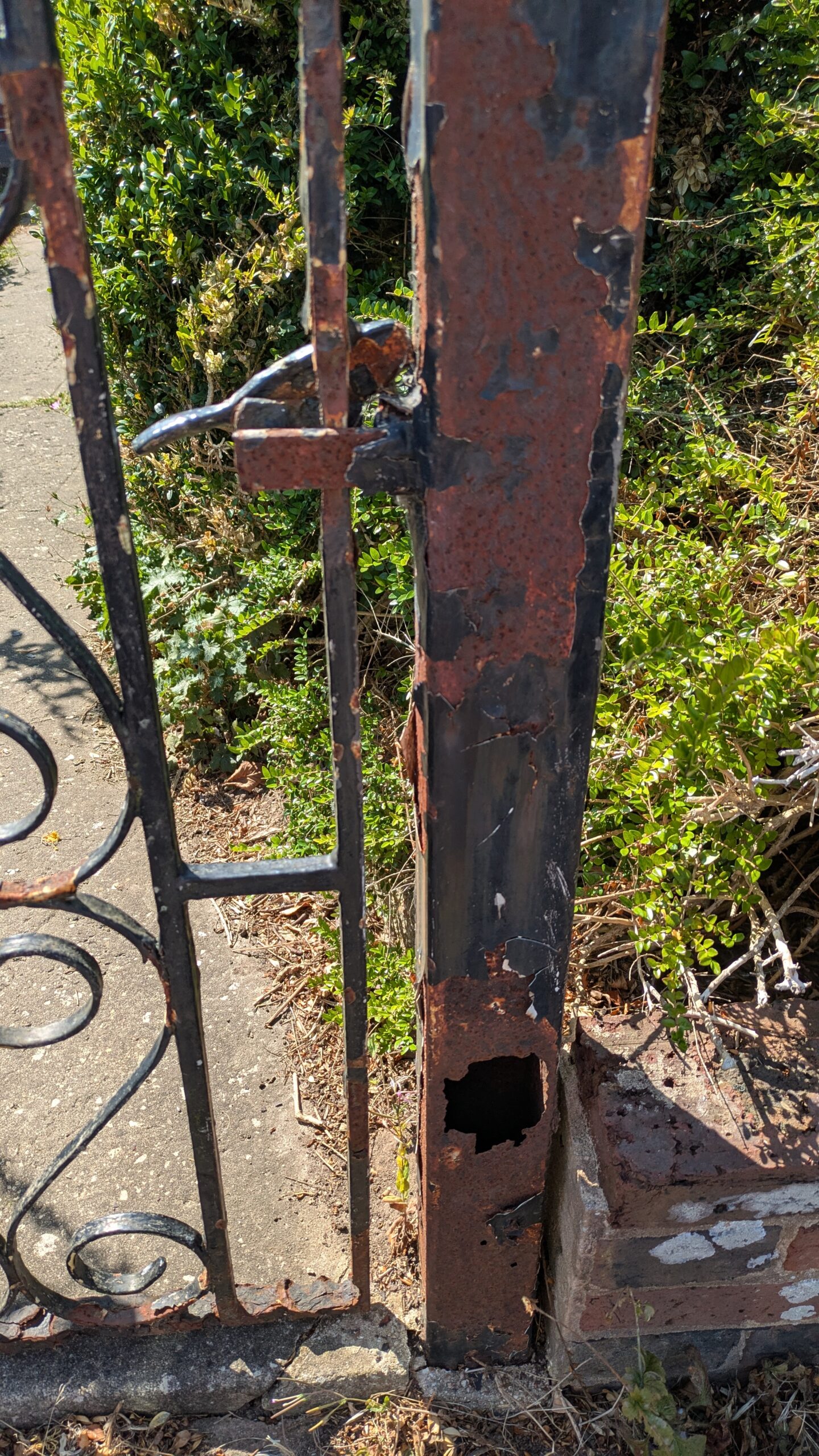 Sometimes it’s possible to replace a post or sand back and repaint rusted metal work. In this case the gate had rusted through in multiple places meaning a gate repair would be more expensive than a replacement.