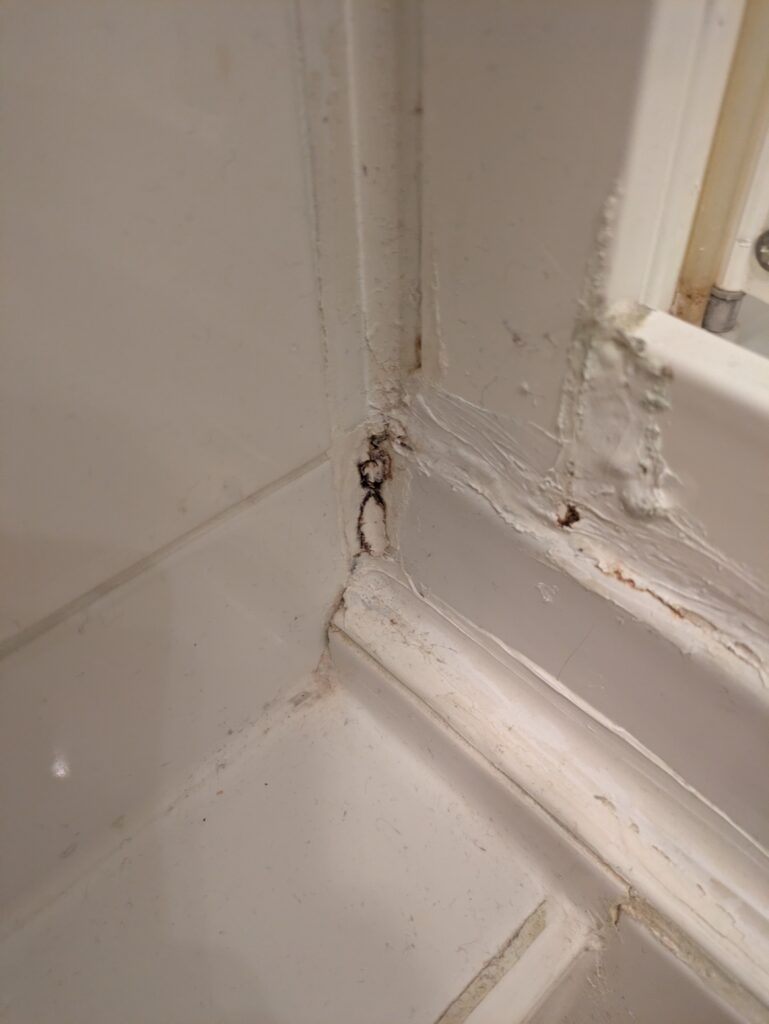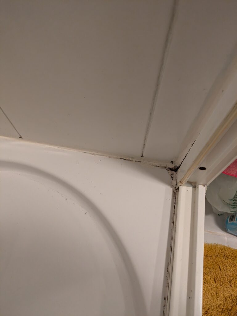 - Removed old moldy silicone in the shower, around the tray, up the walls and cubicle and all around the outside of the shower