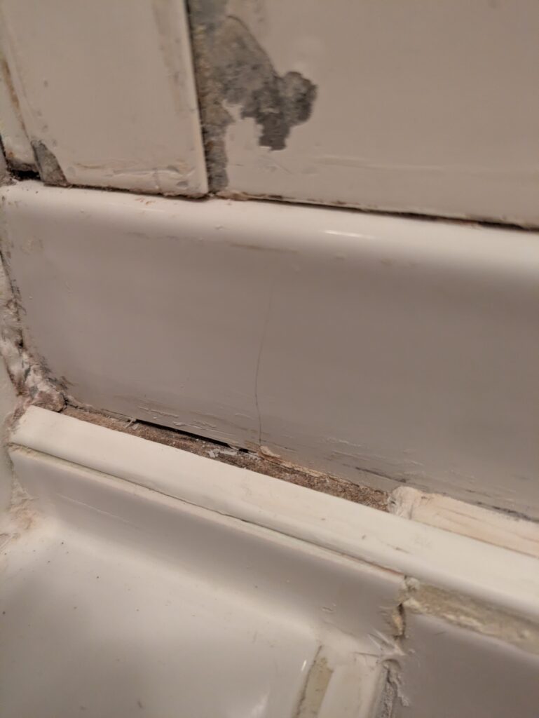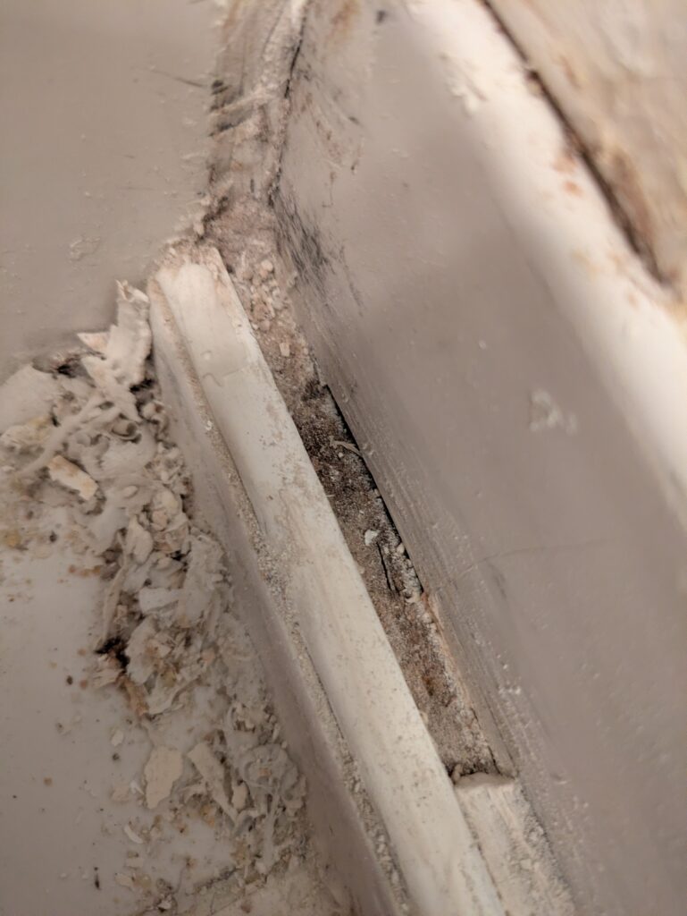 After removing the silicone from the leaking shower in worthing, we removed as much mould and rot as possible. Fortunately the shower stand and floor were not permanently damaged.